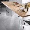 LEVIK Mesa 220×100 cristal, roble en acabado natural encerad