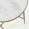 La mesa auxiliar Elisenda, con sobre redondo de vidrio templado y estructura de acero con acabado dorado, es única, ya que debajo del vidrio hay una lámina con acabado de mármol que le da un toque diferente y elegante, por lo que la mesa auxiliar Elisenda gana un look muy chic. Además, con Ø50 cm, podrás tener cómodamente tus accesorios gracias a su amplitud. Be unique.