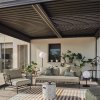 El acero es el protagonista en este sofá que une confort y tendencia, gracias a un diseño ligero que favorece la sensación de amplitud y luminosidad en el espacio, invitando al máximo relax en exteriores bajo techo. Acomódate entre sus cojines.
